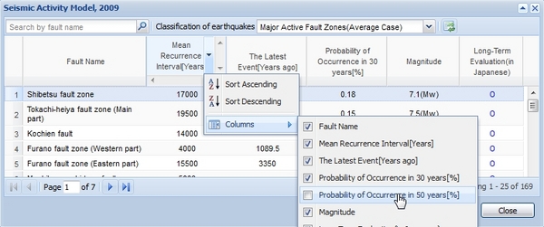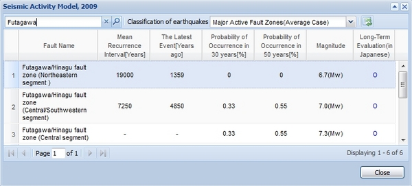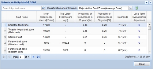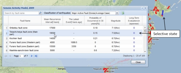 click it and the PDF file(in Japanese) of an article of the long-term evaluation about the selected seismic source fault.