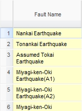In addition, the cells of the subduction-zone earthquakes in the fault name column are colorized.