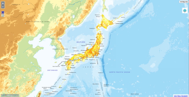 Example of the map of PSHM by EQ Cat. : Category Shallow EQs in land area & in sea area, Average Case, and IJMA>=6-Lower