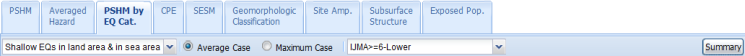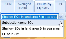 Maps of PSHM by EQ Cat. are displayed by selecting the tab "PSHM by EQ Cat.".