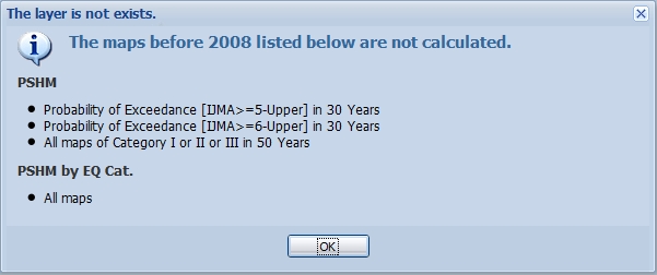 Maps of CF of PSHM are displayed by selecting "CF of PSHM". You can see the lists of the earthquake category at Glossary.