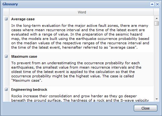 Click "Glossary" menu on the sidebar and the Glossary window appears.