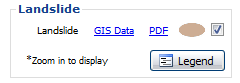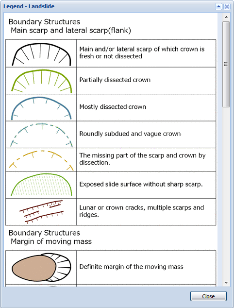Click "Legend" button in "Landslide" box to display the legend window for landslide symbols.