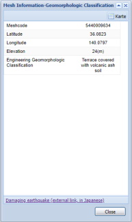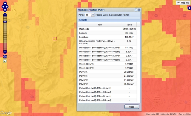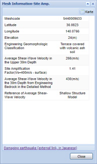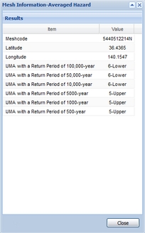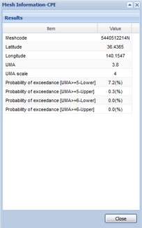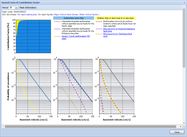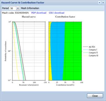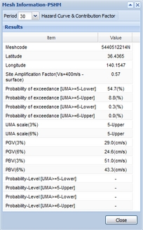 You can download the data of a hazard curve at the selected mesh by clicking links "PDF download" or "CSV download" in the Mesh Information window.