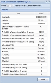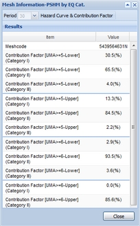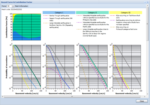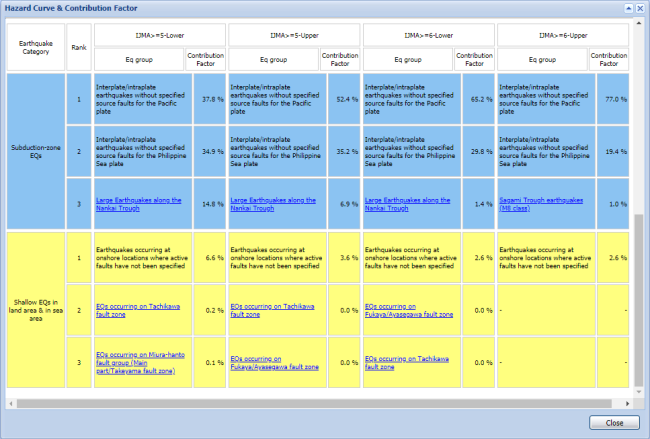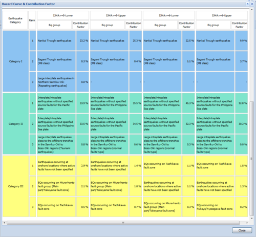 In addition to hazard curve and contribution factor for earthquake category, you can see hazard curves for earthquake groups which of contribution factor is ranked in the top 3 of each earthquake category.