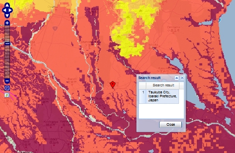If a place out of the J-SHIS map area is searched, a dialog shown below appears.