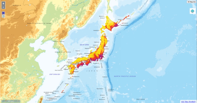 Example of the map of PSHM: Probability of Exceedance [IJMA>=6-Lower] in 30 Years, All earthquakes, Average Case