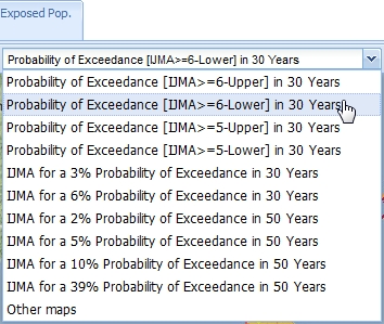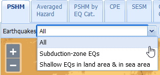 Maps of PSHM are displayed by selecting the tab "PSHM".